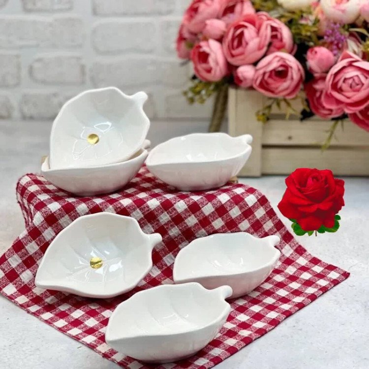 پیاله سرامیکی طرح برگ رنگ سفید خیلی زیبا وکاربردی ست 6 عددی جنس سرامیک بسیار با کیفیت👌