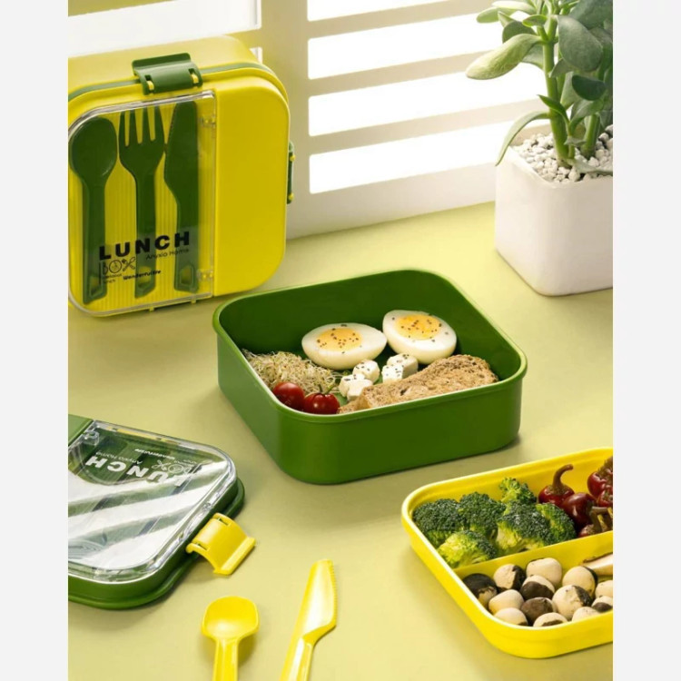 لانچ باکس(ناهاربر) مربع یک طبقه دارای قاشق و چنگال و کارد کیفیت عالی