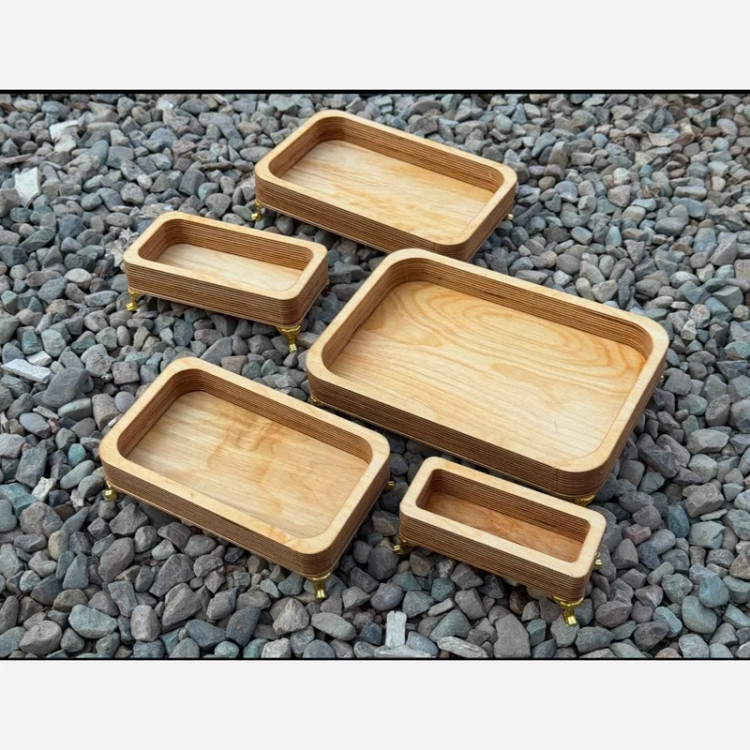 ⚜ست پذیرایی 5 تیکه مستطیل پایه دار ♦️جنس:چوب روس ✅قابل شستشو👌 💈ابعاد سایز بزرگ 19*35 سانت ⚠️ضخامت 30 میل 🎨آغشته به رنگ خوراکی