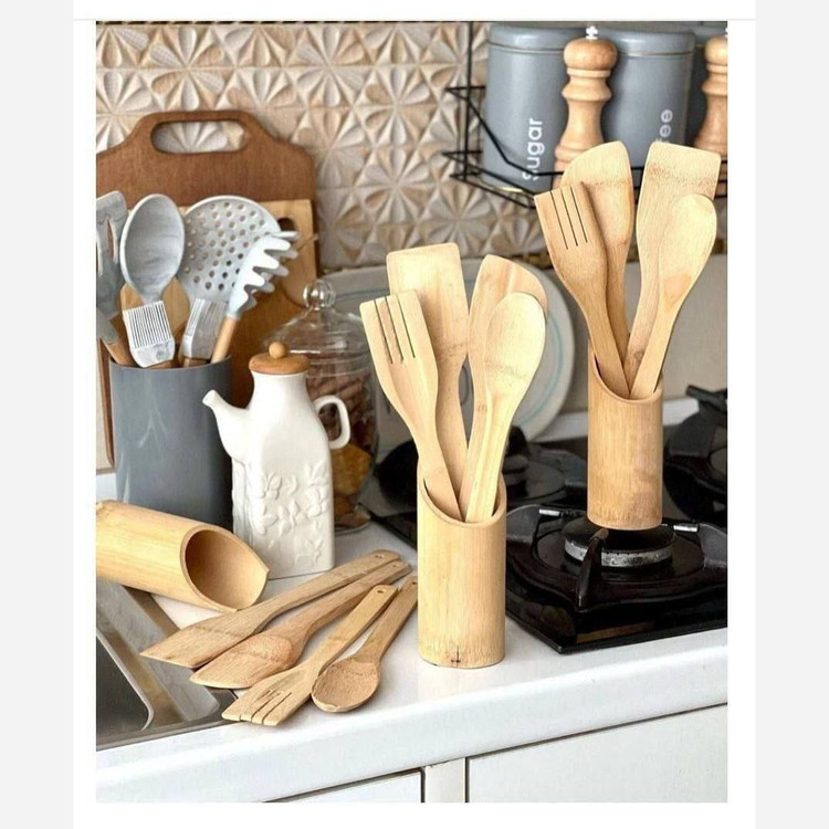 ♨️این ست خوشگل و کاربردی هم بعد مدتها شارژ شده 😍 🎊ست کفگیر و ملاقه بامبو 🎊 📌جنس چوب بامبو درجه 1 ✅ست کامل شامل : 4 عدد کفگیر و ملاقه به همراه استند