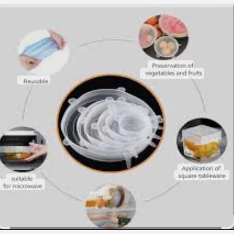 درپوش سیلیکونی 6 عددی شده تاحالا درب یه ظرفی رو گم کنی و ندونی چه کار کنی برای جلوگیری از خراب شدن و هوا گرفتن و بو گرفتن موادغذایی و برای استفاده مجدد از ظروفی که دربشون رو گم کردیم 😁