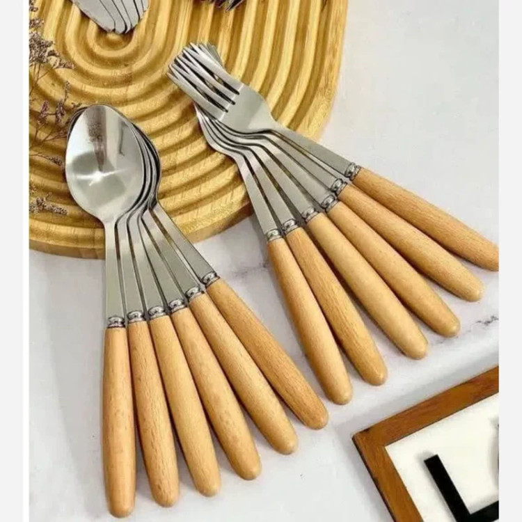 قاشق چنگال 12 عددی دسته چوبی